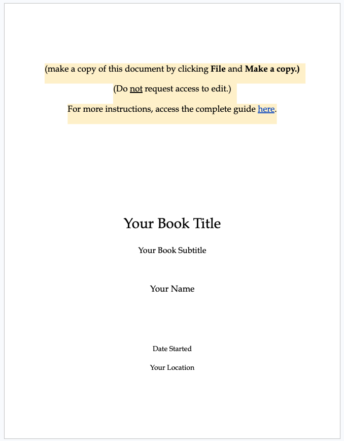 The Title Page is pre-formatted for you to send your manuscript to publishers.