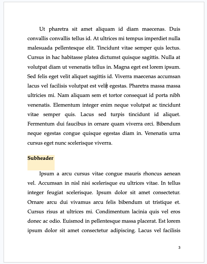 This template comes with pre-formatted subheaders so you don't have to worry about creating and formatting subheaders yourself.